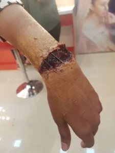 In the special effects makeup technique Dr. Cherag Bambboat helps students understand the basics of p[rosthtics sculpting, molding and casting techniques thus creating an advanced cosmetic effect. He makes sure to teach them that the prosthetics that they create shouldn’t look over the top yet look very realistic. Where many have feared the use of CGI graphics will put the SFX business out of fashion. Our Skilled trainers under the guidance of Cherag Bambboat have proved that the SFX market still has the same essence.